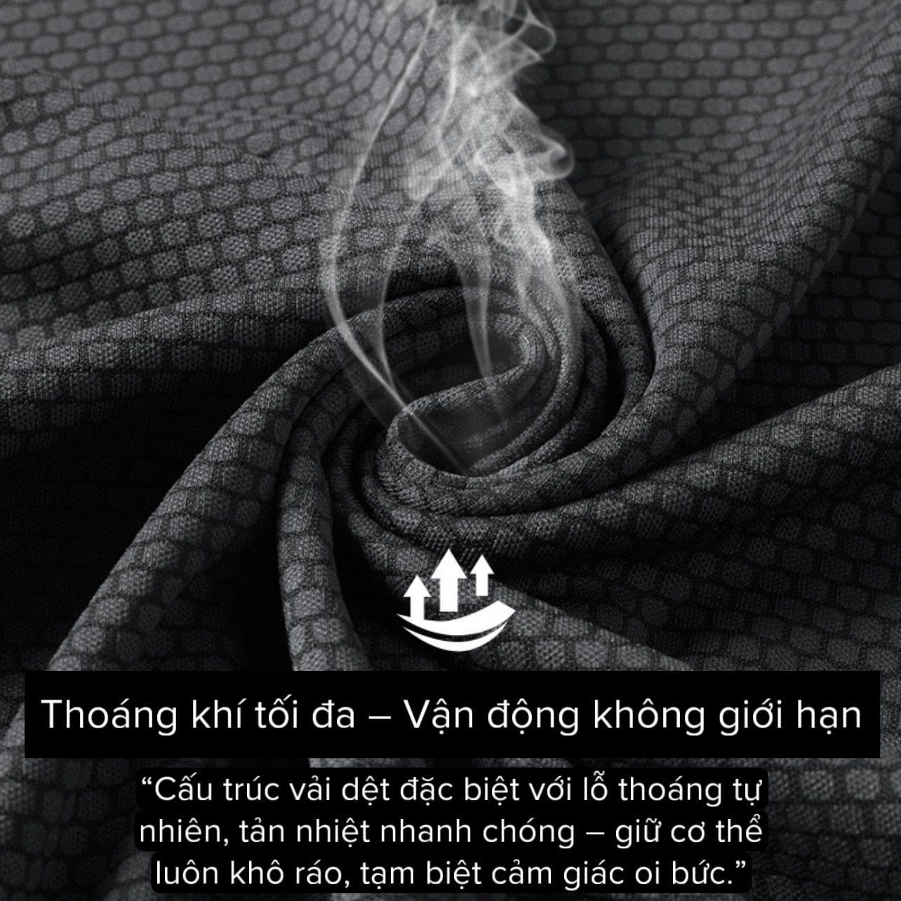 • Thoát ẩm nhanh chóng: cấu trúc vải với các lỗ thoáng khí tự nhiên giúp đẩy hơi ẩm ra ngoài hiệu quả.